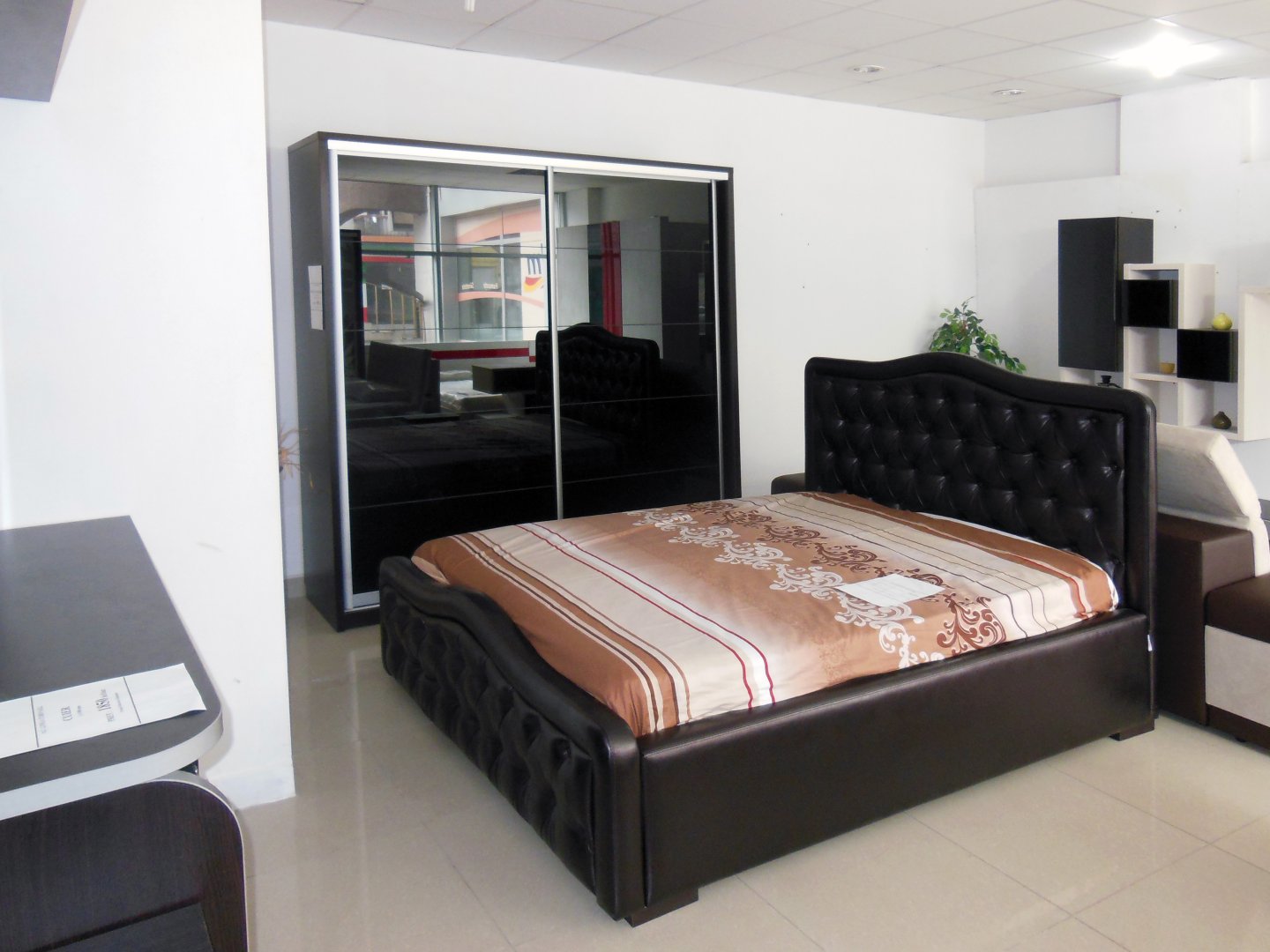 DORMITORCU PLACARI STICLA VOPSITA ROSU SI NEGRU PE PAL LEMN ALB