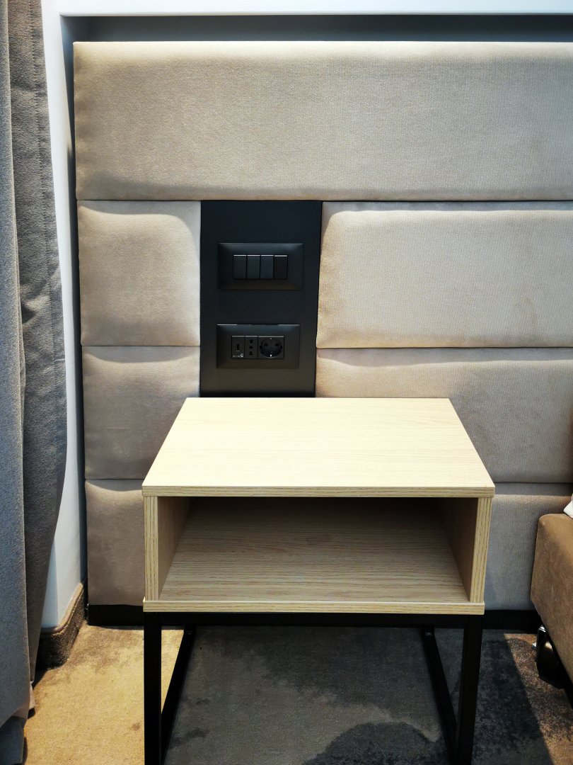 CAMERA PENSIUNE CU DETALIU PRIZA INCASTRATA IN TABLIE PAT TAPITATA
